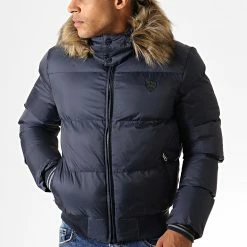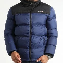 Remise 😀 Doudoune Capuche Utah 2 Bleu Marine Noir de Schott NYC 🌟
