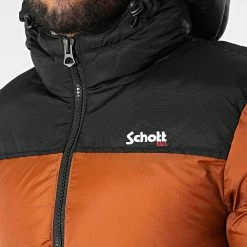 Vente flash 👏 Doudoune Capuche Utah 2 Marron Noir de Schott NYC ❤️