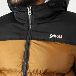 Meilleure vente ❤️ Doudoune Capuche Utah 2 Noir Bandana de Schott NYC 🥰