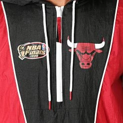 Meilleure vente 🤩 Coupe-Vent Col Zippé Chicago Bulls OJPO1038 Rouge Noir de Mitchell and Ness 😉