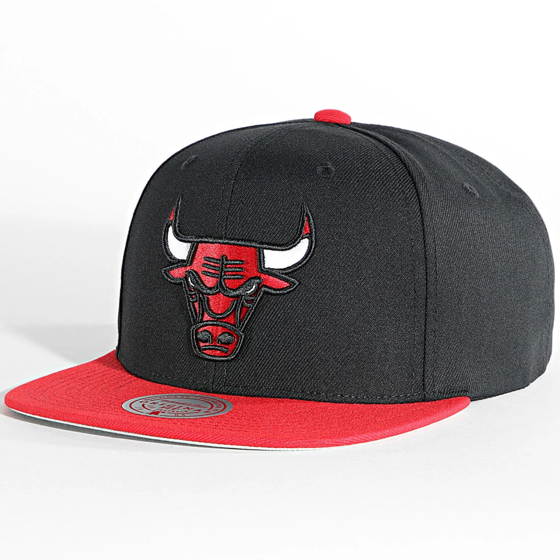 Budget 🎁 Casquette Snapback Core Basic Chicago Bulls Noir Rouge de Mitchell and Ness 🔔