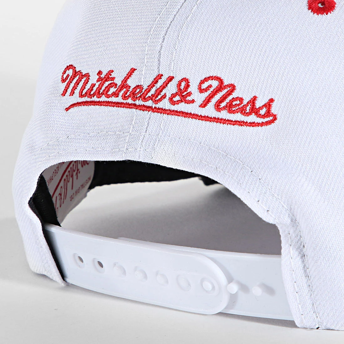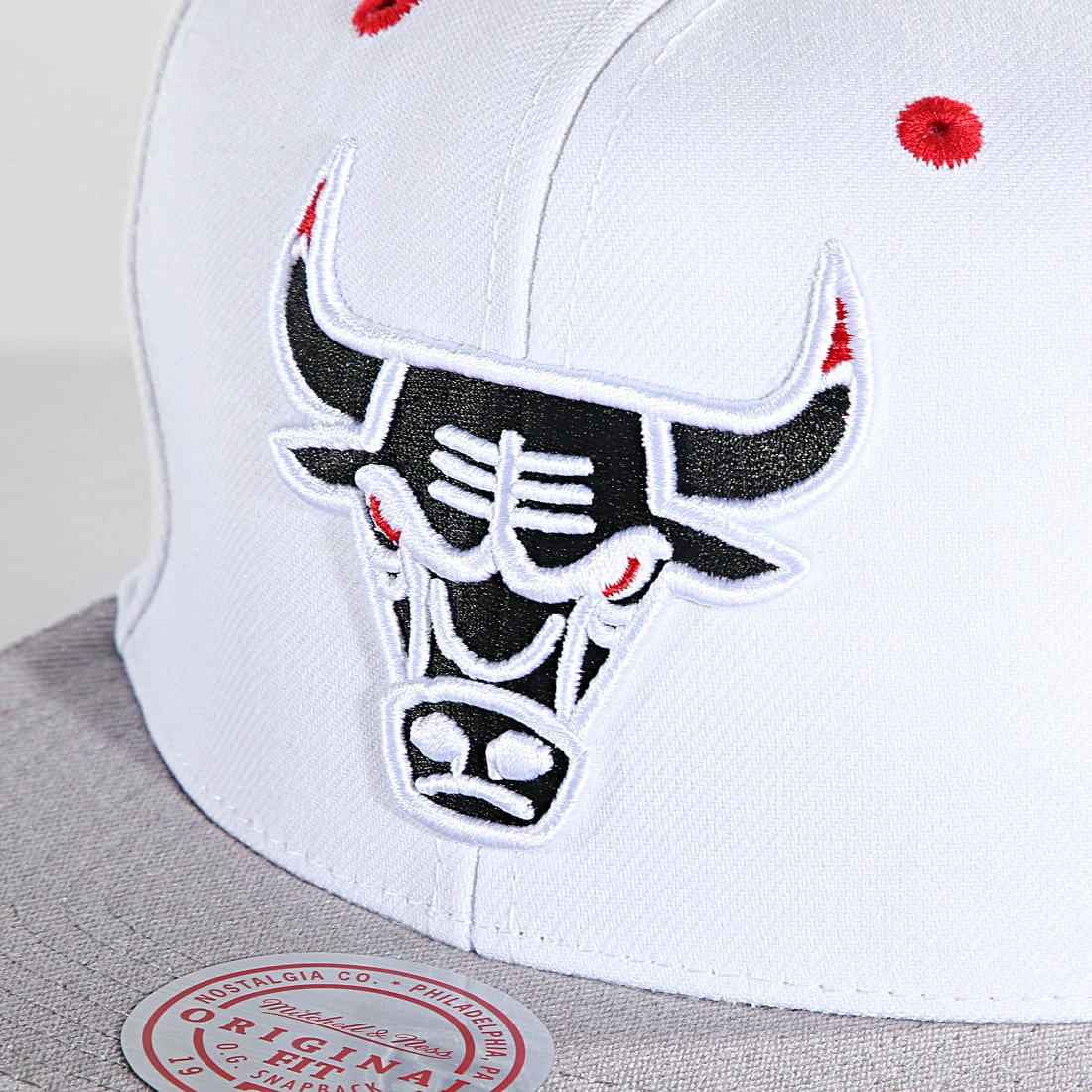 Bon marché 🔥 Casquette Snapback Three Collection Chicago Bulls Blanc Gris de Mitchell and Ness ✔️
