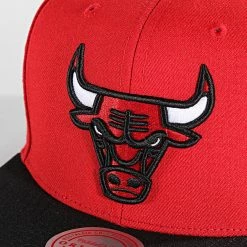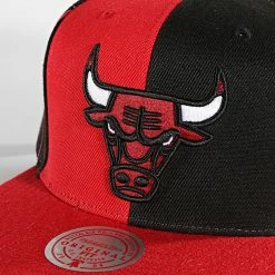 Budget ❤️ Casquette Snapback NBA Split Crown Chicago Bulls Noir Rouge de Mitchell and Ness 🔔