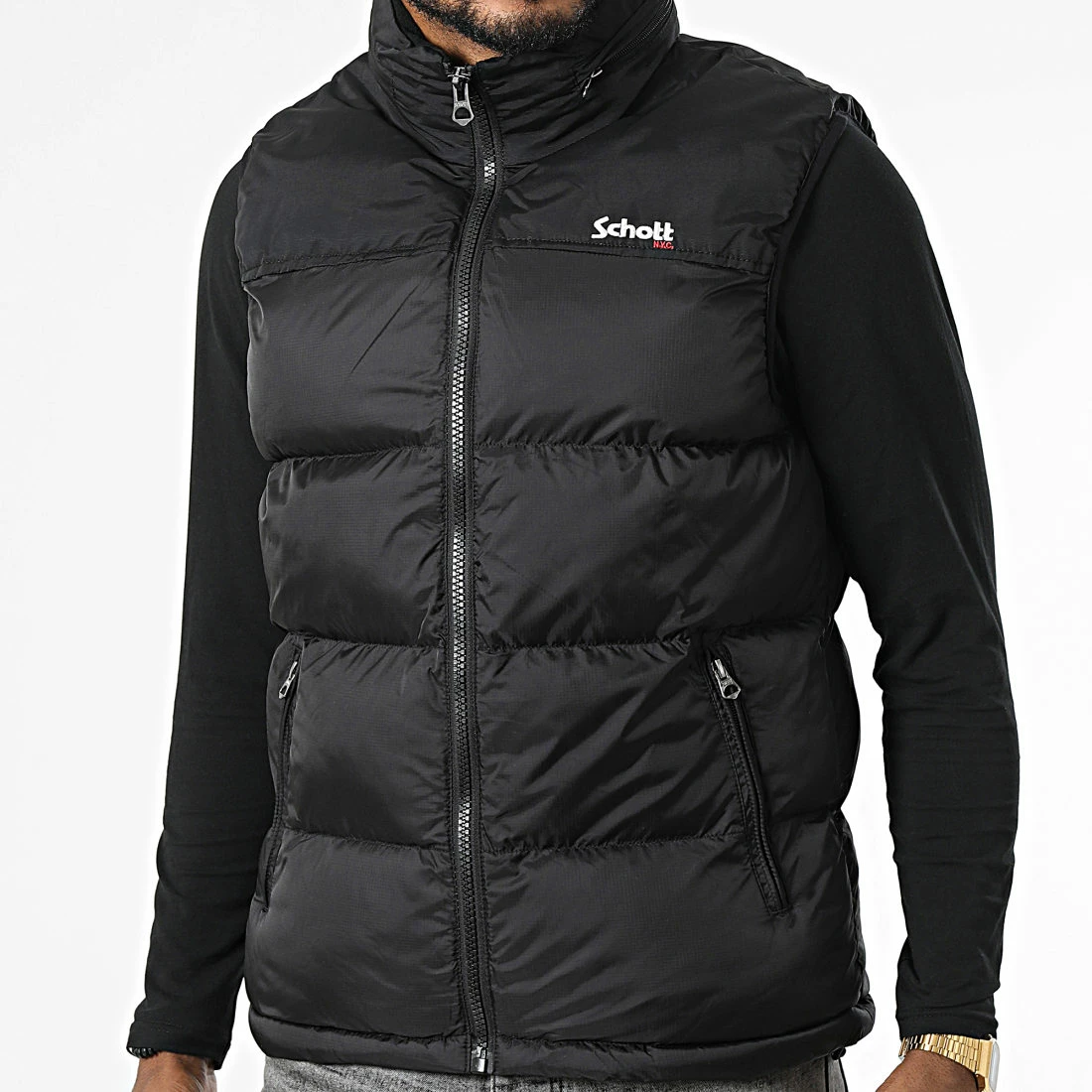 Tout neuf ❤️ Doudoune Capuche Sans Manches Utahv Noir de Schott NYC 🔔