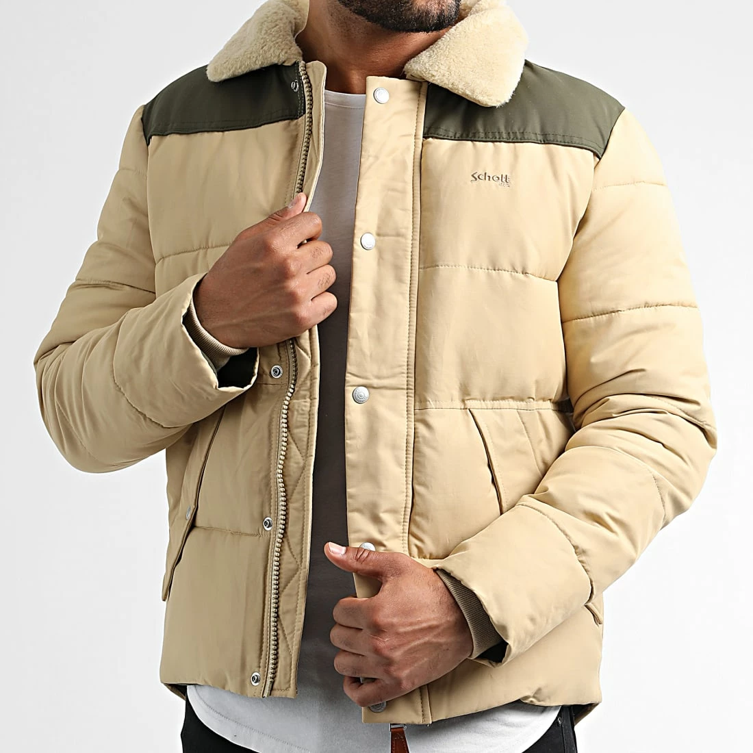 • Doudoune rembourrée avec col en fourrure synthétique