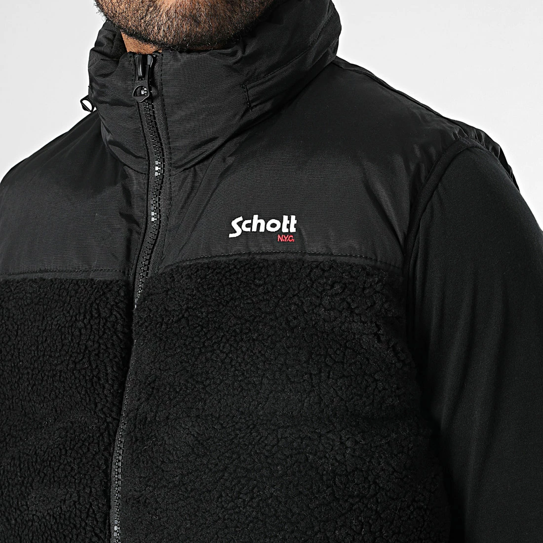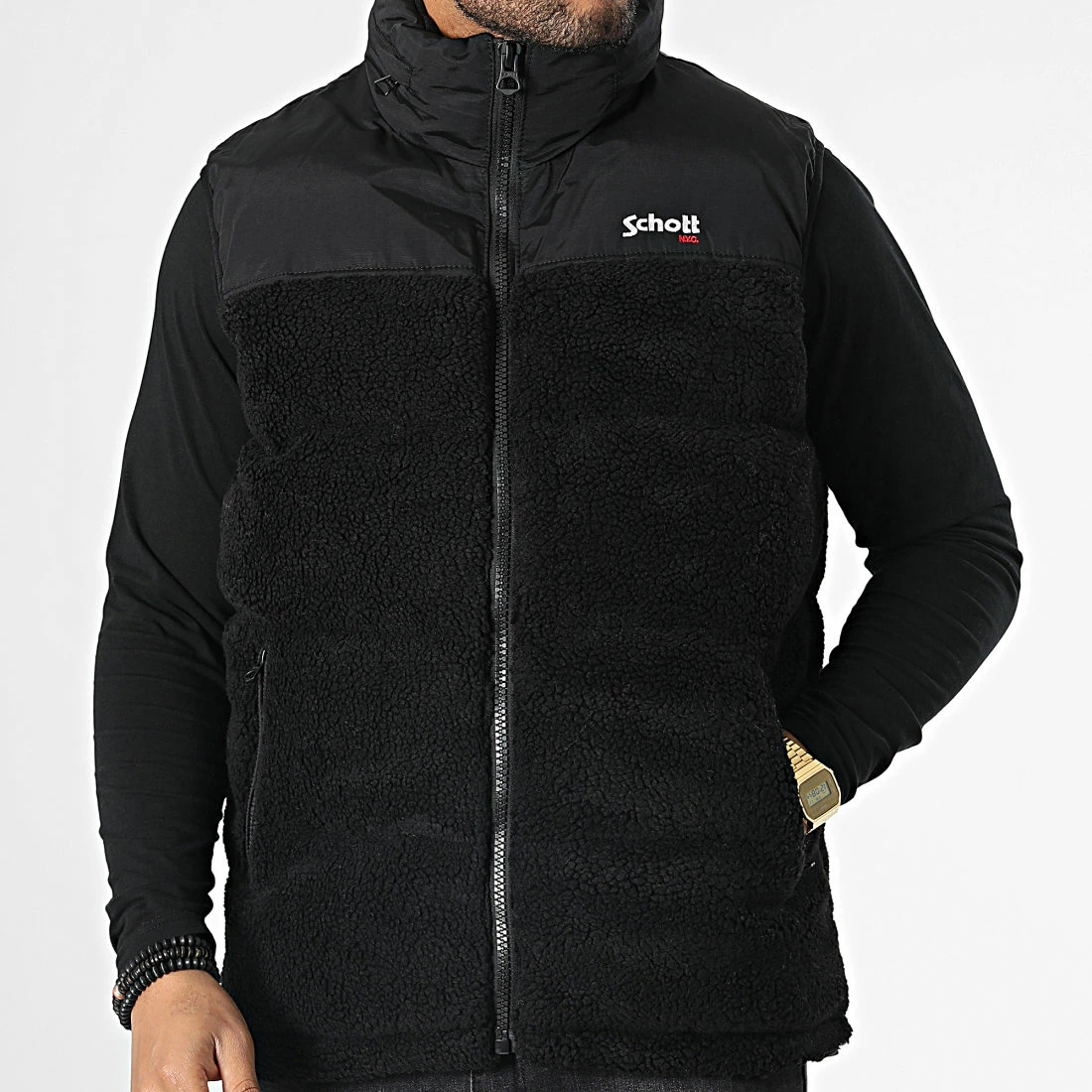 • Doudoune sherpa capuche sans manches chaude tendance avec visuel Schott NYC brodé
