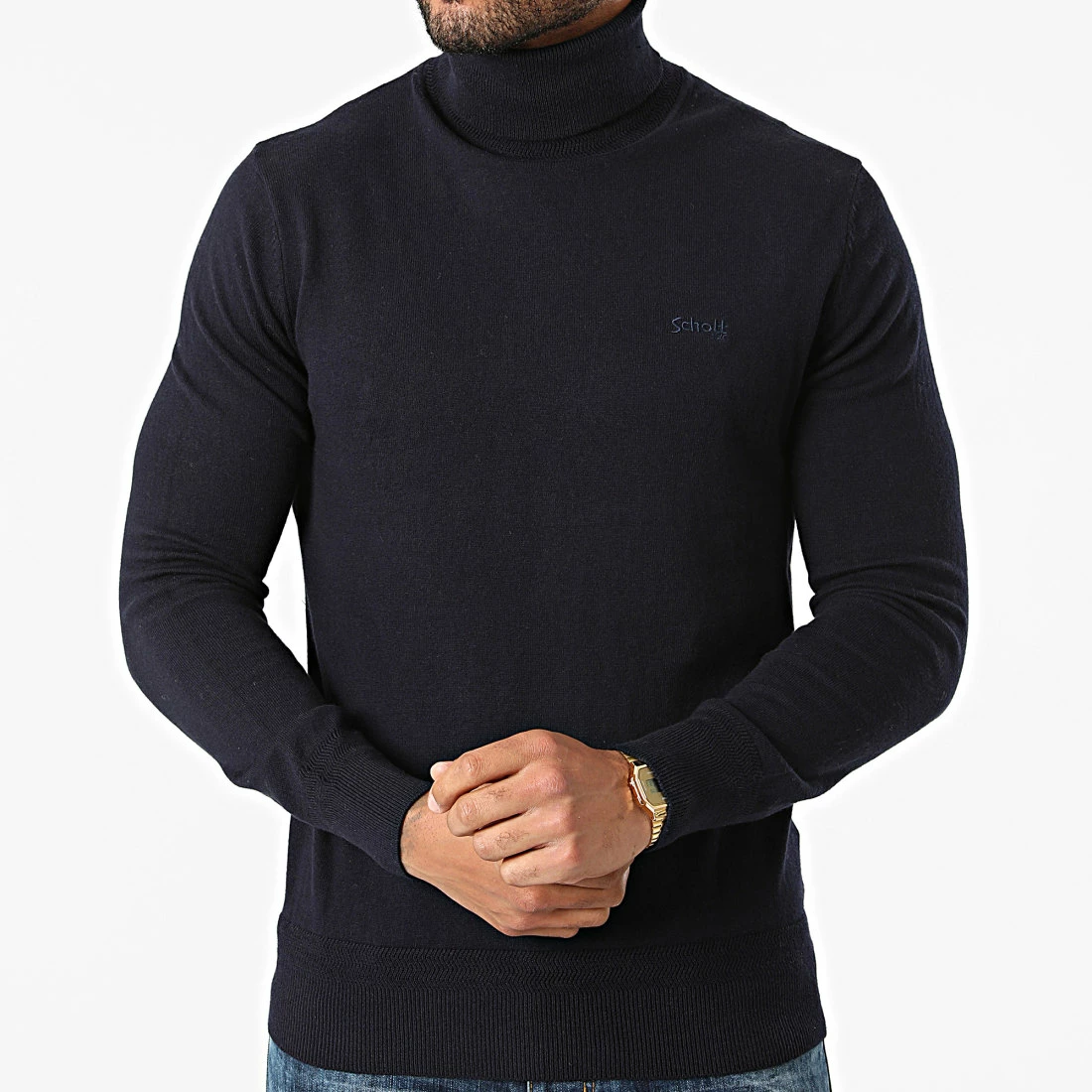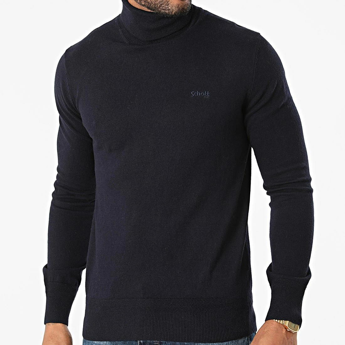 Remise 💯 Pull Col Roulé PLBEAL4 Bleu Marine de Schott NYC ⭐